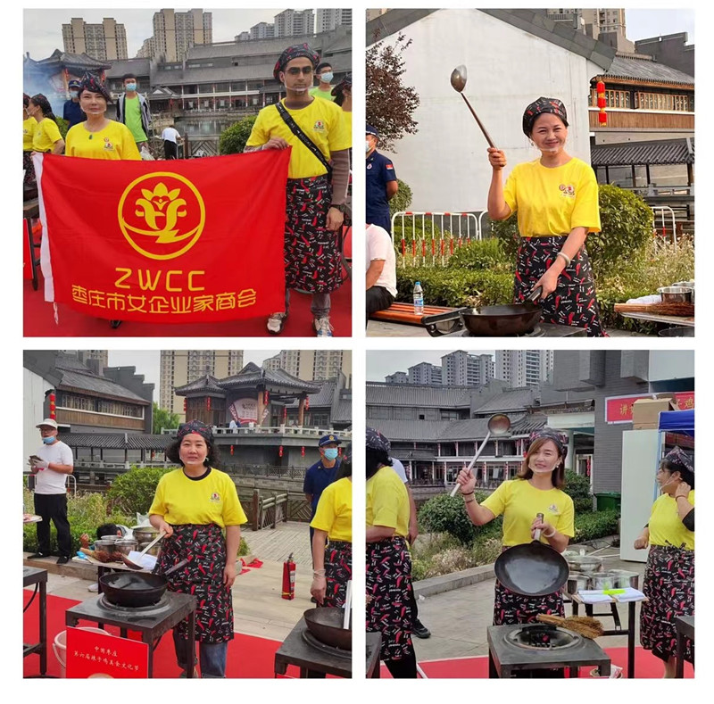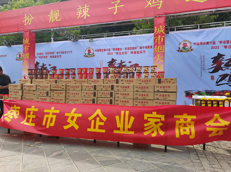 此次盛會,棗莊市女企業(yè)家商會受邀并組織20余名會員參加。在商會會長盧春穎的帶領(lǐng)下,商會會員企業(yè)山東化繁生物科技有限公司、山東鼎養(yǎng)食品有限公司、棗莊暹羅印象泰國直營店三家企業(yè)現(xiàn)場布置展位參展,充分展示了會員企業(yè)優(yōu)秀的企業(yè)文化和豐富的特色產(chǎn)品。同時以盧會長為代表的還參加了百姓炒雞表演,展現(xiàn)了精湛的廚藝,商會副會長張月喬(山楂妹)受大會邀請參加開幕式并激情演唱自己的原唱歌曲。