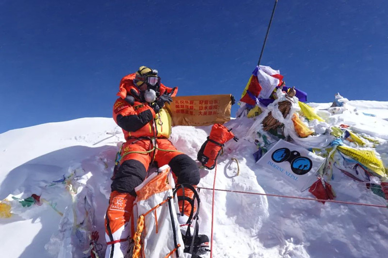 捐贈儀式上,彭向雨分享了攀登珠峰的經(jīng)歷和感受。在攀登珠峰的過程中,彭向雨經(jīng)歷了嚴(yán)寒、缺氧、雪崩、滑墜、凍傷等一系列的艱難險阻,成功登上海拔8848.86米的珠穆朗瑪峰峰頂,并將此次捐贈的旗幟展示在珠峰峰頂上,用無畏艱險、永不言敗、砥礪前行的力量,表達(dá)了攀登者登頂?shù)臎Q心和信念,也向全世界展示了棗莊人的勇氣和毅力。