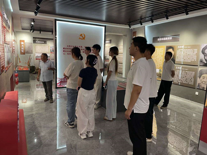 隨后,鎮(zhèn)文化書院“烽火紅印”志愿者丁繼海同志帶領(lǐng)新入學(xué)大學(xué)生們前往黃丘山套紅色記憶館開展紅色教育。通過參觀珍貴史料、聆聽革命故事,學(xué)子們深刻感悟革命先輩的奮斗精神,進(jìn)一步堅定了傳承紅色基因、勇?lián)鷷r代使命的理想信念。